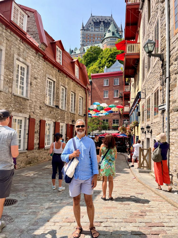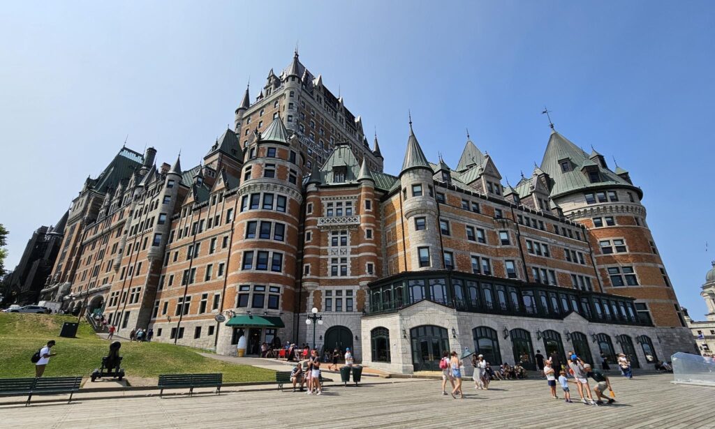 We had a few days to hang out between family gatherings, so we drove northward, back to Canada. Want to experience a European city without leaving North America? Québec City, a walled city with narrow cobblestone streets, stone buildings, and an interesting blend of French and English architecture, cuisine, and language fits the bill! While the primary language spoken there is French, everyone also speaks English.