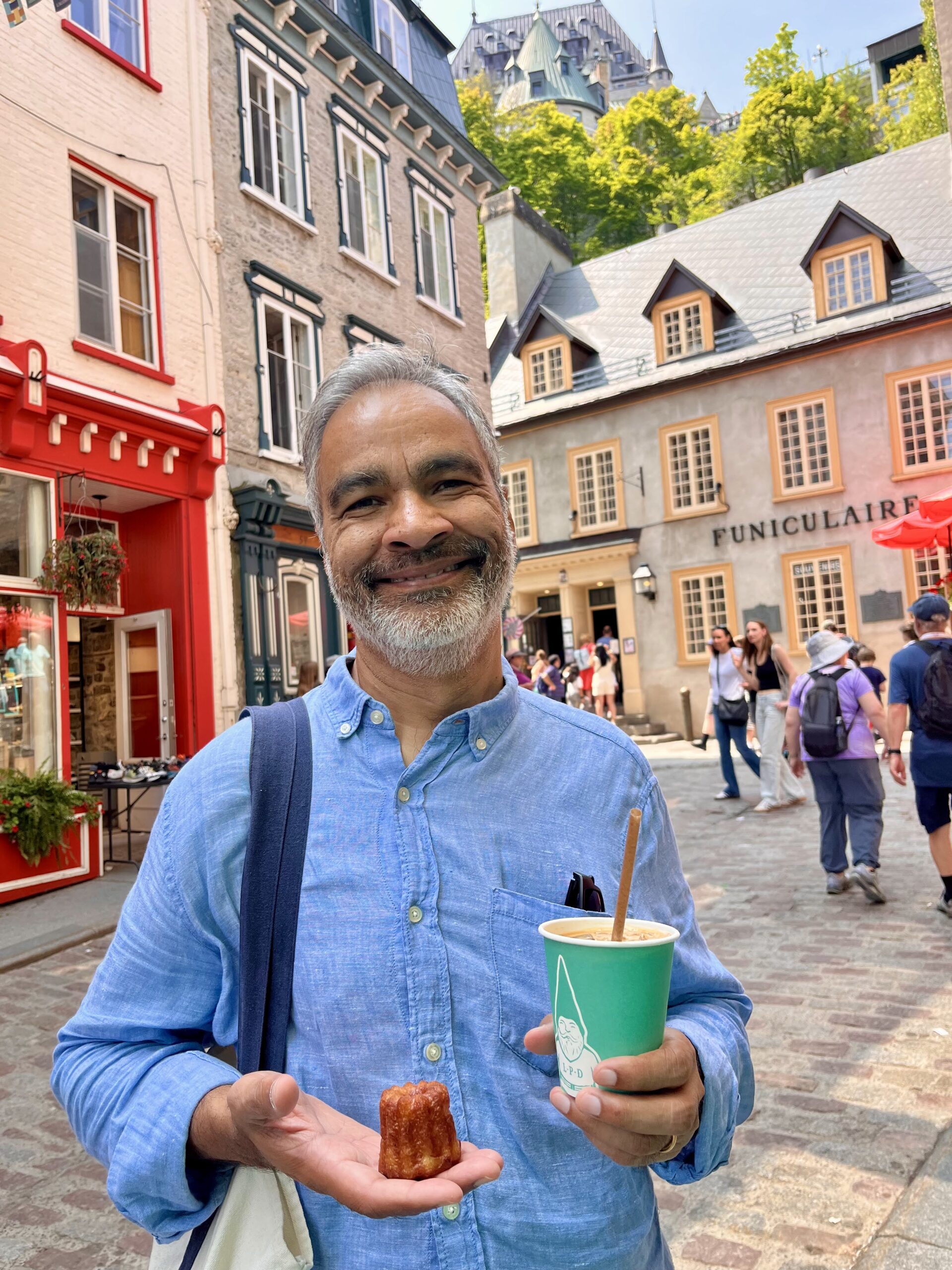 On our drive back to Vermont for a small Shintre family reunion (shout-out to Aparna, Sanjay, Manasee, Salil, Vedant, Siddharth, Pooja, Pradyumna, and Rasika), we made a slight detour. We are big fans of author Louise Penny’s Inspector Gamache murder mysteries set in an imaginary Quebec village known as Three Pines. So, we had to visit Louise Penny’s new Three Pines Café. Located beneath a bookstore in Knowlton, Quebec, Canada, we enjoyed wandering around and reading all of the clever wall art. We also indulged in coffee and pastries, and hoped for a celebrity sighting.