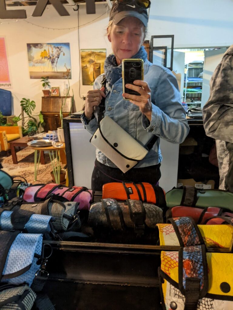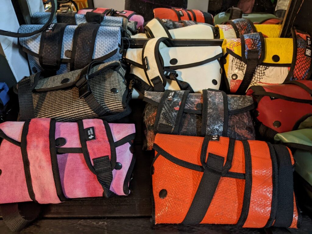 The Into Coffee café is spacious yet warm and cozy. I wandered around to seek out their other product, sustainable bags they create from discarded items (e.g., theatre curtains, kites, milk cartons, furniture upholstery). They are called Into Carry. I met one of the lovely designers hard at work on a sewing machine to learn more about their company. They had a great idea to create a bag from airline tickets. And then Manohar had an idea to make a bag out of marathon ribbons and/or marathon bibs. Hopefully someday we can see this through fruition.