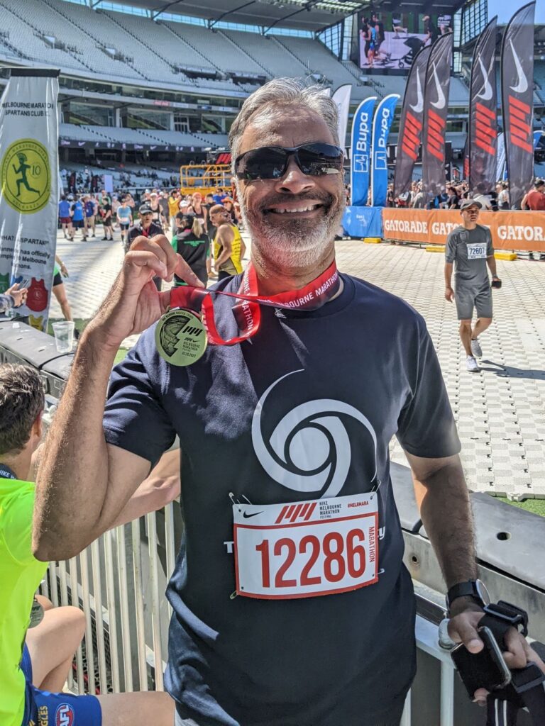 Manohar and I arrived in Melbourne just in time for the October 2nd marathon. Although his training hadn’t gone to plan, he was looking forward to completing his 16th marathon. My training for the half marathon was waylaid by Covid (despite four vaccinations), so I switched to the 10K.